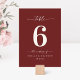 Sencillo Color Sólido Oscuro Cine Cine De Boda Roja Número De Mesa De La Cena. Esta moderna tarjeta de mesa de moda es sencilla, clásica y elegante, con un color de fondo sólido y un tipo de letra caligrafía con bonito con cruz. Mostrado en la nueva autopista. Disponible en varias opciones de color, o no dude en editar los colores desde el editor (haga clic en personalizar mientras personaliza). Para ver más, busque las colecciones de bodas 2022 de Moda Paperie para ver todos los diseños de moda y colores bodas para este año.