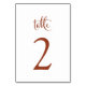 Este elegante y sencillo número de mesa de terracota forma parte de la colección Autumn Romance.