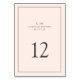 Simple número de tabla boda con un diseño elegante e intemporal con su monograma de dos letras, nombres, fecha y número de tabla rodeados de un borde delgado. Todos los elementos de diseño son de color gris sobre un fondo rosado y pueden cambiarse a cualquier color que desee en la herramienta de edición de diseño. Un diseño limpio y clásico perfecto para una pareja que quiere un número de mesa de estilo tradicional con un toque moderno. Agregue cada número de tabla a su carrito individualmente.