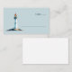 This place card features a charming lighthouse illustration set against a serene blue background, evoking a peaceful maritime theme. The design uses soft watercolor techniques with a palette of cool blues, crisp whites, and warm yellows, creating a whimsical and nostalgic atmosphere. The clean, sans-serif typography allows for easy customization, making it perfect for weddings, parties, or any event seeking a touch of coastal charm. Its balanced layout and tranquil mood make it an inviting addition to your table setting.