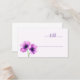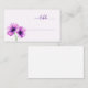 This elegant place card features a minimalist design with two beautifully illustrated flowers in soft shades of purple and pink, accented by dark green stems. The serene color palette creates a calming atmosphere, enhanced by the delicate watercolor-like texture that adds depth to the floral motif. A cursive script font in muted lavender spells out "table," offering a customizable space for personalization. Perfect for weddings or formal events, this card combines botanical charm with modern simplicity, evoking feelings of sophistication and refinement.