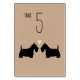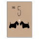Siluetas de novia y de novio negro escocés con corazón. Carta de mesa de bodas con estilo de papel kraft para los amantes del perro escocés. Cada tarjeta debe numerarse y añadirse al carrito por separado. Visite el mundo doodle de Jenn para ver más tarjetas de mesa de raza de perros y productos de planificación de bodas con temática escocesa.