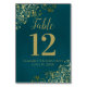 These beautiful wedding table number cards feature a simple yet elegant design with gold script calligraphy on a dark marbled teal colored background with a frilly gold faux foil floral filigree in the corners. Perfect way to make your wedding reception beautiful and help your guests find the right table at the same time.