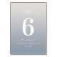 Sencilla Gardenia Ombre Blanco y Dusty Blue Wedding Mesa Números de la cena. Esta moderna tarjeta de mesa de moda es simple, clásica y elegante, con un suave degradado oscuro y un tipo de letra caligrafía con bonito con cruz. Mostrado en la nueva autopista. Disponible en varias opciones de color, o no dude en editar los colores desde el editor (haga clic en personalizar mientras personaliza). Para ver más, busque las colecciones de bodas 2022 de Moda Paperie para ver todos los diseños de moda y colores bodas para este año.