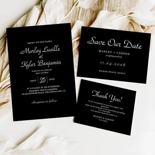 Modern Sleek Black Romantic White Script WeddingDiseñado por Pasindu Lakshitha