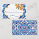 Encontró su ducha de novia principal baraja azul naranja, azul Majjolica azulejos españoles mediterráneos panda de naranjas con escritura informal moderna, agradable para el verano funciones al aire libre tarjetas de lugar