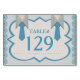 Las divertidas tarjetas de número de mesa de nuestra colección original de bodas gays rinden homenaje a la camisa a rayas azul de Oxford siempre popular, marcos de la década de 1890, formas de llamada + la ilusión 3D de los cuellos, cuellos de camisa y corbatas de 2 caballeros. Personalice el campo numeral - o límpielo y rellene a mano cuando las mesas estén configuradas. #zazzlemade
