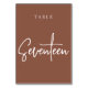 Las tarjetas de número de tabla simple y de moda en color de tierra rojizo marrón y blanco hacen una declaración elegante en su boda o evento. Las funciones de diseño "table [number]" se encuentran en una mezcla de letras clásicas de sif y manuscritas. El diseño se repite en ambos lados. Las tarjetas numeradas individualmente se venden por separado; solicite cada número de tabla individualmente de nuestra colección.