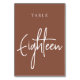 Las tarjetas de número de tabla simple y de moda en color de tierra rojizo marrón y blanco hacen una declaración elegante en su boda o evento. Las funciones de diseño "table [number]" se encuentran en una mezcla de letras clásicas de sif y manuscritas. El diseño se repite en ambos lados. Las tarjetas numeradas individualmente se venden por separado; solicite cada número de tabla individualmente de nuestra colección.