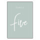 Tarjeta De Mesa Tabla con guiones de mano verde pálido CINCO