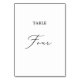Esta delicada tabla de caligrafía negra con cuatro números de mesa es perfecta para un boda moderno. El romántico diseño minimalista presenta una bonita y elegante tipografía negra sobre un fondo blanco con un aspecto limpio y sencillo. La tarjeta se imprime en la parte delantera y trasera (doble cara). Otros números de tabla de la colección se venden por separado.