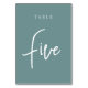Las tarjetas de número de tabla simples y de moda en blanco y verde azulado polvoriento hacen una declaración elegante en su boda o evento. Las funciones de diseño "table [number]" se encuentran en una mezcla de letras clásicas de sif y manuscritas. El diseño se repite en ambos lados. Las tarjetas numeradas individualmente se venden por separado; solicite cada número de tabla individualmente de nuestra colección.