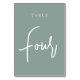 Las tarjetas de número de tabla simples y de moda en Eucalyptus Green y white hacen una declaración elegante en su boda o evento. Las funciones de diseño "table [number]" se encuentran en una mezcla de letras clásicas de sif y manuscritas. El diseño se repite en ambos lados. Las tarjetas numeradas individualmente se venden por separado; solicite cada número de tabla individualmente de nuestra colección.