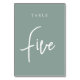 Las tarjetas de número de tabla simples y de moda en Eucalyptus Green y white hacen una declaración elegante en su boda o evento. Las funciones de diseño "table [number]" se encuentran en una mezcla de letras clásicas de sif y manuscritas. El diseño se repite en ambos lados. Las tarjetas numeradas individualmente se venden por separado; solicite cada número de tabla individualmente de nuestra colección.