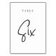 Tarjeta De Mesa Tabla SIX con guiones de mano blanca y negra