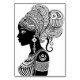 Hermoso retrato Chica africano con estilo de pelo de tejido de cera de origen étnico, creado al estilo de tatuaje tribal blanco y negro. Ilustracion vectorial original Copyright BluedarkArt TheChameleonArt.