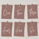 Tarjetas sencillas y elegantes de números de mesa en tonos terrosos Terracotta y blanco hacen una declaración elegante en su boda o evento. El diseño presenta "mesa [número]" en una mezcla llamativa de letra clásica serif y letra manuscrita. El diseño se repite en ambos lados. Las tarjetas numeradas individualmente se venden por separado; ordene cada número de mesa individualmente de nuestra colección.