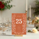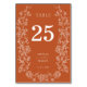 Número de tabla del Boda de Terracotta Fall Floral. Esta tarjeta de número de tabla tiene un estilo suave y elegante con un marco floral blanco que se siente intemporal. Delicados ilustraciones florales blancos a lo largo de los lados le dan un toque de encanto original e inspirado en la naturaleza. El diseño está limpio y organizado, con una alineación centrada y un espacio claro para crear un aspecto refinado. Perfecto para un tema de otoño. En general, el diseño es romántico pero sobrio, perfecto para un boda moderno o tradicional.