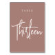 Tarjetas simples y de moda de números de tabla en color tierra Terracota y blanco hacen una declaración elegante en su boda o evento. Las funciones de diseño "table [number]" se encuentran en una mezcla de letras clásicas de sif y manuscritas. El diseño se repite en ambos lados. Las tarjetas numeradas individualmente se venden por separado; solicite cada número de tabla individualmente de nuestra colección.