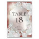 Tarjeta de número de tabla de boda | Fondo luminiscente de la perla de terracota con hojas de rosa luminosas, hojas de eucalipto, aliento de bebé y brillantes mellizas. Este diseño se ve especialmente bien en la elección de papel Pearl Shimmer. texto personalizar, estilo de fuente, color y tamaño. Creamos esta plantilla para facilitar la personalización con su propia información. Esto forma parte de una completa suite de estilo Boda con boda, ducha para bebés y otras papelería de eventos. Obra de arte original © de WhimsicalArtwork™.