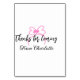 Tarjeta De Mesa thanks for coming add name text message pink bow f