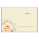 This wedding place card features a minimalist design with a soft pastel color palette of pale yellow and light green, creating an elegant and serene atmosphere. The layout includes a large peach-colored rose surrounded by delicate sprigs of small white flowers, adding a touch of botanical beauty. Clean sans-serif typography is used for the "TABLE" heading, enhancing the modern aesthetic while providing ample space for customization. Perfect for weddings or formal events, this card combines natural motifs with structured simplicity to evoke tranquility and grace.