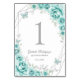 Turquoise silver and white Quinceanera celebration table number cards. Features, script font, silver butterflies, watercolor roses and tiara. Perfect for an elegant princess style glam celebration. Personalize with your own details. Printed Zazzle invitations or instant download digital printable template.