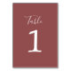 Tarjeta De Mesa Verdadera simplicidad 1 Boda Marsala Número de tab