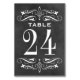 Las tarjetas de número de tabla boda de estilo vintage presentan giros decorativos y florecen a ambos lados de la tarjeta. El estilo rústico del fondo de pizarra negra texturizada con diseño blanco. Personalice cada tarjeta de número de tabla que necesite y añada cada una a su carrito individualmente.