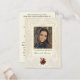 Con una bella oración católica tradicional de la Santísima Virgen María, Nuestra Señora de Guadalupe en la espalda con un crucifijo de oro. El fondo de la parte delantera es un vintage diseño de encaje con un ramo de flores debajo de la foto. Todo el texto y las fuentes están en español y pueden ser modificadas.