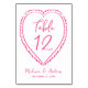Guide guests to their seats with these whimsical wedding table number cards designed to coordinate with playful, modern wedding décor. The design features a hand-drawn pink heart surrounding the table number displayed in a handwritten pink script on a white background, with the couple’s names and wedding date shown below for a sweet and personal touch. The design repeats on the back for a cohesive and polished look throughout your reception. Perfect for Valentine’s weddings, romantic celebrations, and couples who love fun, love-filled stationery, these wedding table number cards add a cheerful pop of color to your reception tables. This card measures 3.5"x5". Edit each table number individually and add them to your cart to ensure a smooth ordering process.