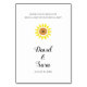 A wedding table number card showcasing a vibrant yellow watercolor sunflower with lush green leaves on the front, and a special message along with your wedding date on the back. Please be sure to personalize both sides of the card.