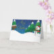 Tarjeta de Navidad con muñeco de nieve en el polo norte.