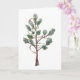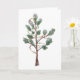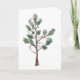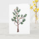 Un pequeño pino blanco adornado con luces centelleantes de colores y nieve, arte original de Kristina. impresión de acuarela. Feliz Navidad en texto verde, en el interior