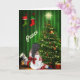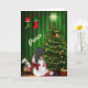 Tarjeta de Navidad Afroamericana con niña sentada frente al árbol de Navidad