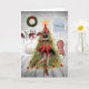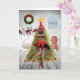 Tarjeta de Navidad afroamericana con mujer decorando el árbol de Navidad