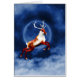 Una alegre tarjeta de Navidades que muestra a un reno volando a través de las nubes y pasando la luna. Una buena tarjeta de envío para un negocio.