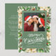 Envía un mensaje navideño sincero con esta elegante tarjeta de Navidad de estilo vintage con motivos botánicos, que presenta poinsettias blancas, piñas y vegetación que rodean tu foto y saludo personalizados. La parte trasera ofrece un cálido mensaje de gratitud, perfecto para reflexionar sobre el año y agradecer a los seres queridos.