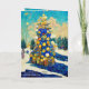 Tarjeta de Navidad árboles azules y dorados estili