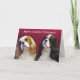 Esto es una tarjeta de Navidad que ofrece una fotografía original de dos perros de aguas de rey Charles arrogantes, un tricolor y de un blenheim, ambos con sus cabezas amontonadas con una expresión linda, rara, contra un fondo rojo oscuro con el texto, los "Felices Navidad arrogantes!".