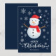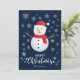 Tarjeta de Navidad azul del hombre de nieve de Fel