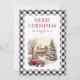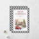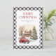 Tarjeta de Navidad Black White Plaid Red Truck Mer