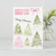 Comparte la alegría navideña con tu cónyuge utilizando esta tarjeta de Navidad en acuarela caprichosa que presenta lazos rosados suaves y árboles verdes. Ideal para parejas que envían saludos cálidos. Me gusta: Encanto dibujado a mano, personalización festiva, ambiente romántico. Haga clic en personalizar y comience a editar para agregar su mensaje cariñoso y fotos.