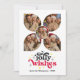 Envía alegría con esta tarjeta de Navidad inspirada en el estilo retro que presenta un diseño divertido de “Deseos Alegres” y una disposición única de collage de varias fotos. Perfecta para compartir tus momentos familiares favoritos, esta tarjeta trendy combina tipografía nostálgica con estilo moderno. Personaliza con tus fotos y texto para crear una felicitación navideña única que tus seres queridos atesorarán.