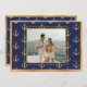 Tarjeta de felicitación de Navidad con foto náutica. Hermosos anclas doradas falsas sobre fondo azul marino. Marco metálico dorado falso. Agregue sus fotos familiares favoritas para personalizar esta belleza. Cambie los nombres y el año. Tan chic. Perfecta para todos los dueños de veleros y yates.
