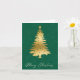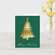 Envía alegría festiva con este lujoso diseño de árbol de Navidad dorado sobre un fondo soñador de luces rojas, verdes y doradas. El elegante árbol metálico con recortes de estrellas y la elegante escritura “Merry Christmas” crean un ambiente cálido y sofisticado para las fiestas. Perfecto para saludos familiares, mensajes navideños corporativos o deseos estacionales elegantes.