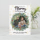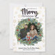 Tarjeta de Navidad con copos de nieve dorados y foto. Agrega una foto de 4x4. Cambia el año y agrega la firma de tu familia.