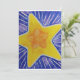 Tarjeta de navidades que representa una copia de la estrella de acuarela pintada a mano. Escritura de Mateo 2:9 en la espalda.