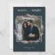 Esta es una tarjeta plana doble de Navidad alegre y brillante que cuenta con tipografía de letra moderna, vegetación y follaje de acuarela y un collage de 4 fotos en la parte posterior. Cuenta con 5 fotos en total. Fotos de prostooleh / Freepik.