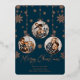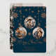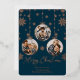 Esta Tarjeta de Navidad de Foil con Foto de Adorno Moderno cuenta con 3 espacios para fotos para ti, tu familia, mascotas y más. La tarjeta cuenta con un acabado de foil real con copos de nieve elegantes y un diseño de marco de adorno.